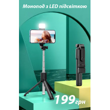 Селфі-палиця трипод для телефонів 3 в 1 з Bluetooth-пультом та LED підсвіткою Чорна
